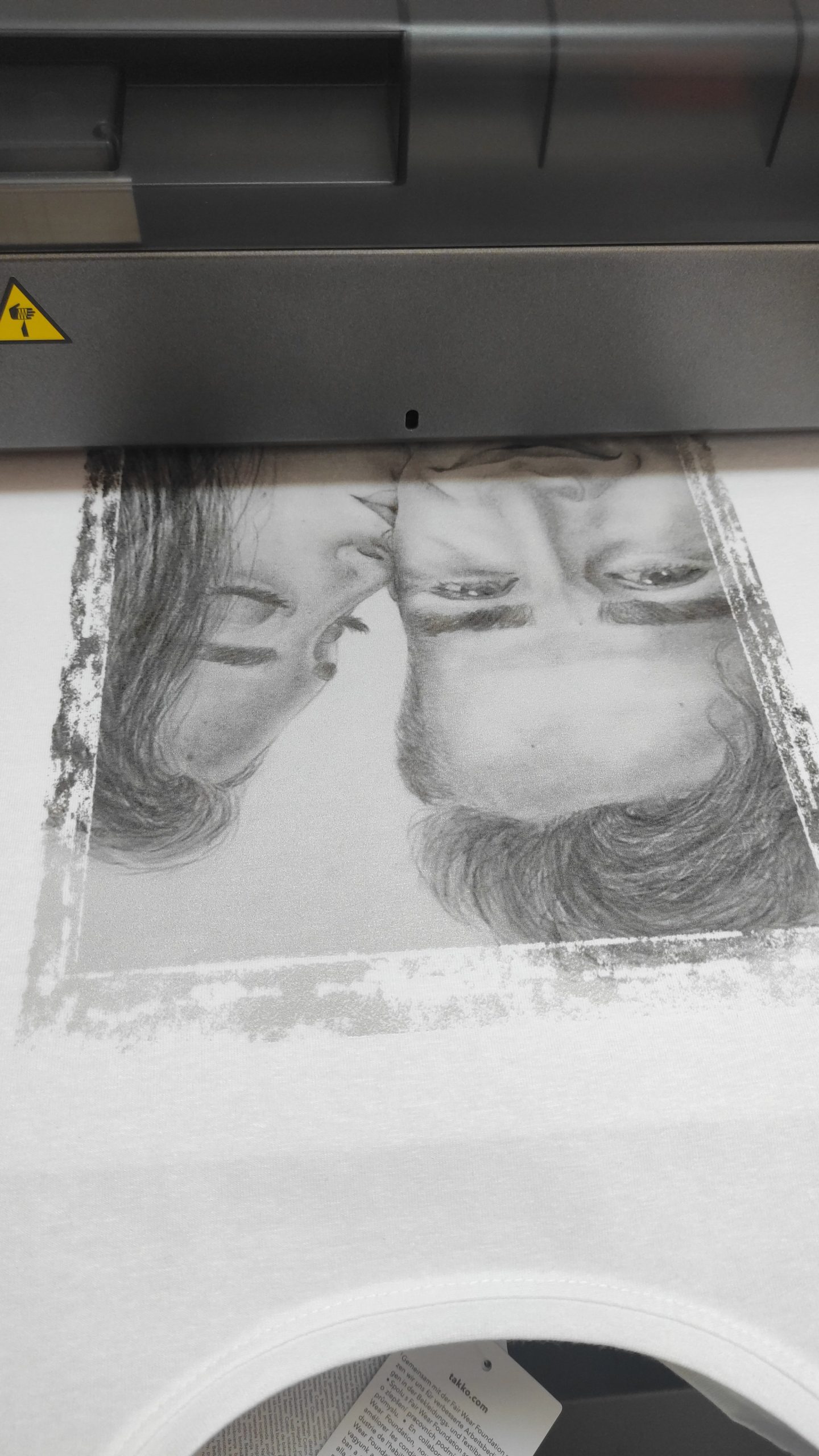 Aplicarea printului pe materialul textil se face cu o presă termică setată la 150 grade timp de 15 secunde.
